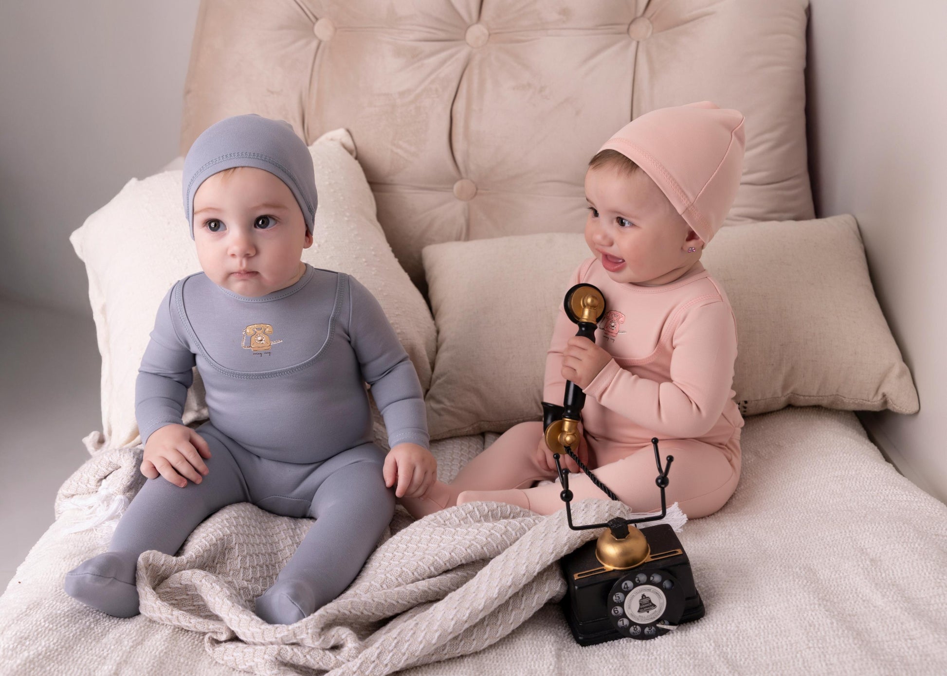 Antique Phone Footie-Stone Blue