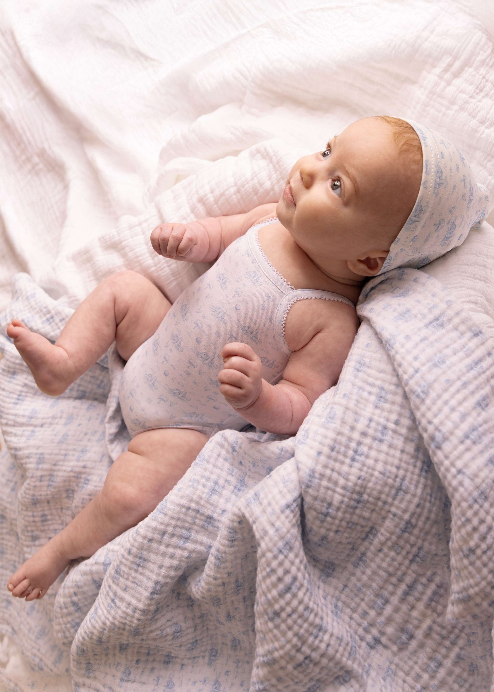 includes a footie, hat, swaddle, undershirt and baby brush