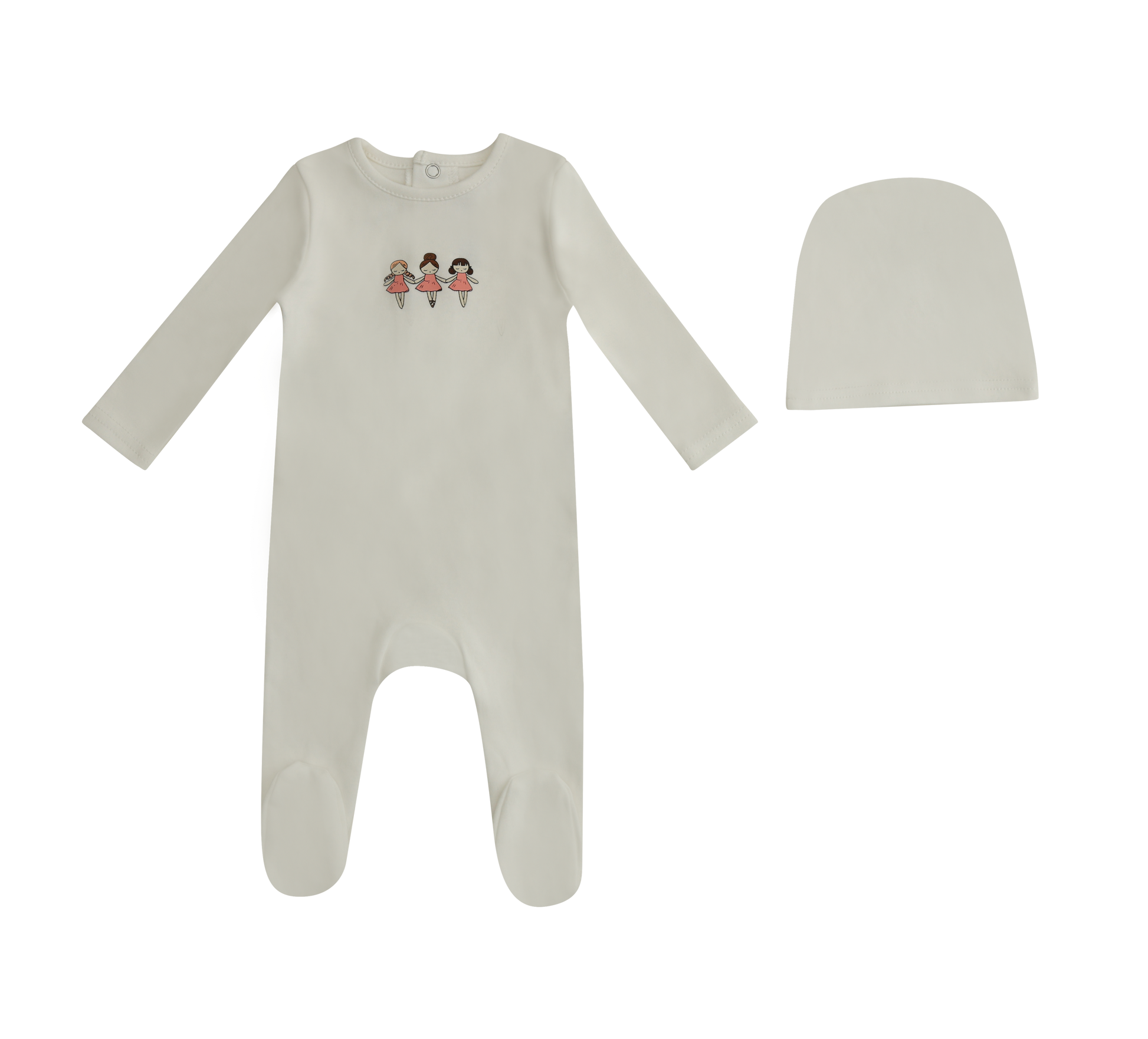 Pima Cotton Mini Dancing Dolls Footie and Hat - White