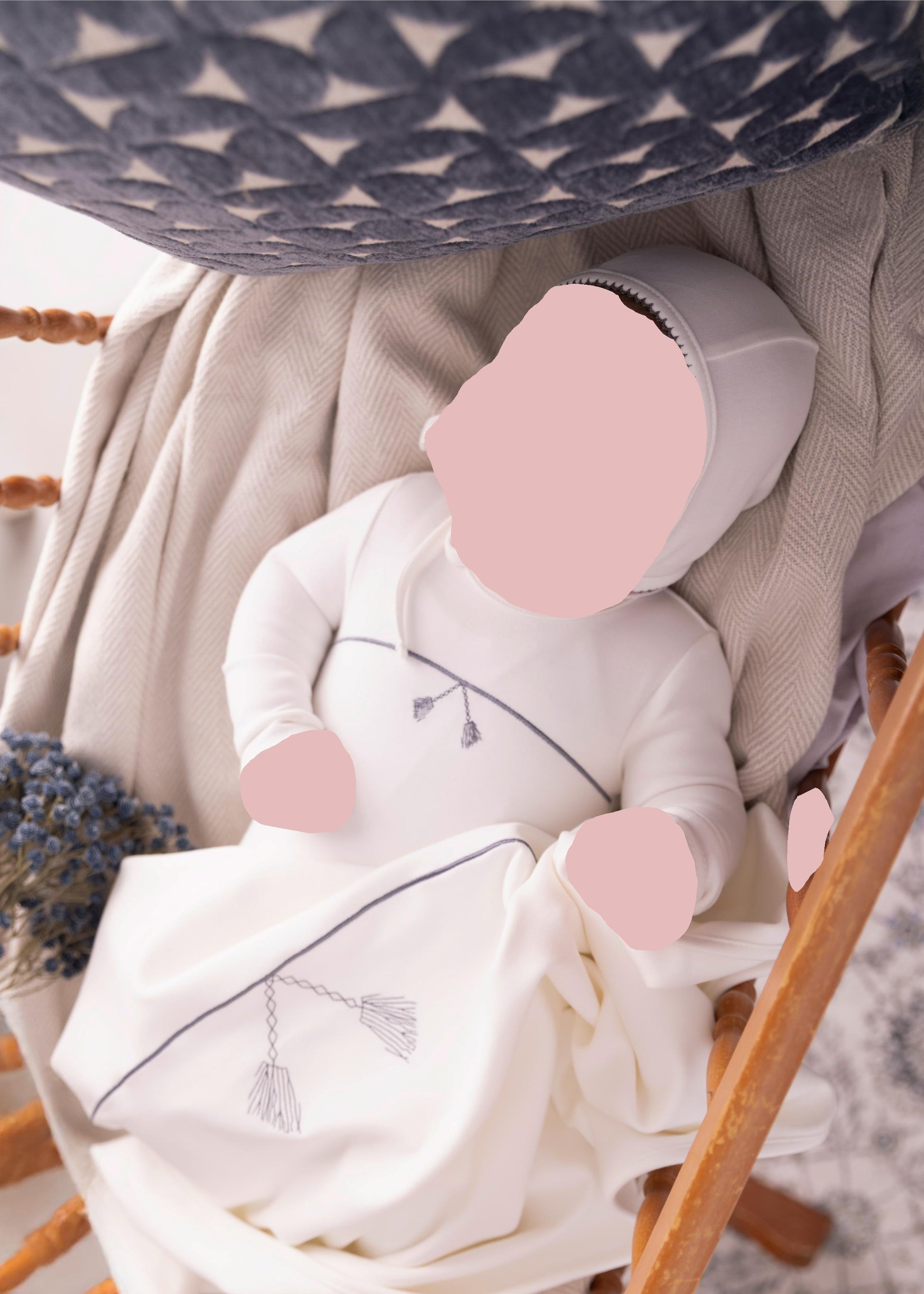 Mini Embroidered Tassle Onesie and Hat-Light Blue